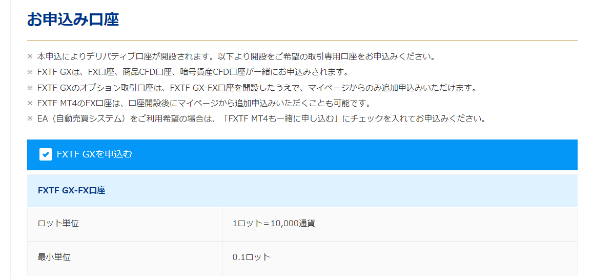 口座は「FXTF GX-FX口座」以外に「FXTF MT4口座」もあります。