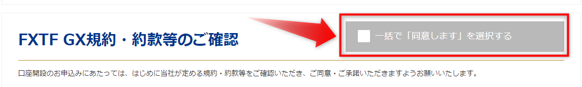 FXTF GX規約・約款(やっかん)等を確認し、同意します。