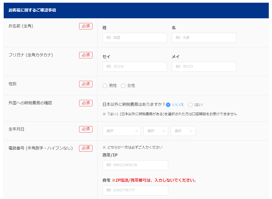 口座開設申込ページとなりますので、文章を読みながら進めていきます。