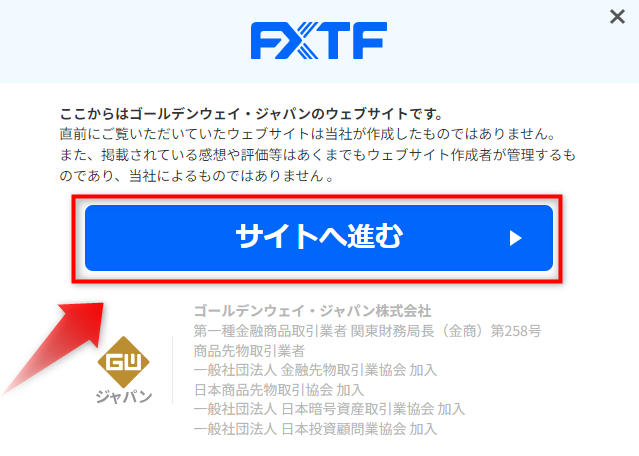 上記の「FXTFの口座を開設する」ボタンを押すと、外部サイトに移動します。