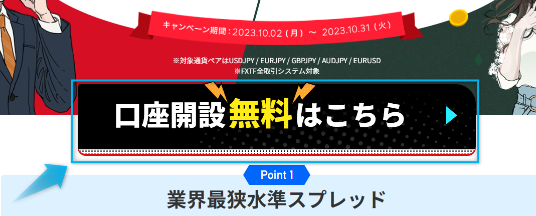 FXTFのトップページに移動しますので、「口座開設無料はこちら」をクリックします。